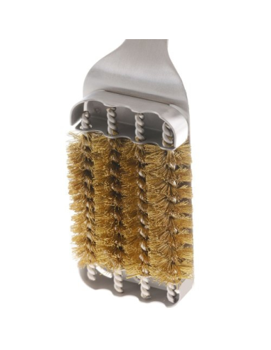 De vier robuuste, spiraalvormige borstels kunnen zich met hun korte, messing haren in elke ongemakkelijke hoek van de grill wringen. De borstels roteren en kunnen makelijk vervangen worden als dat nodig is. De borstel is geschikt voor elk type grill, zoals gietijzer en RVS.