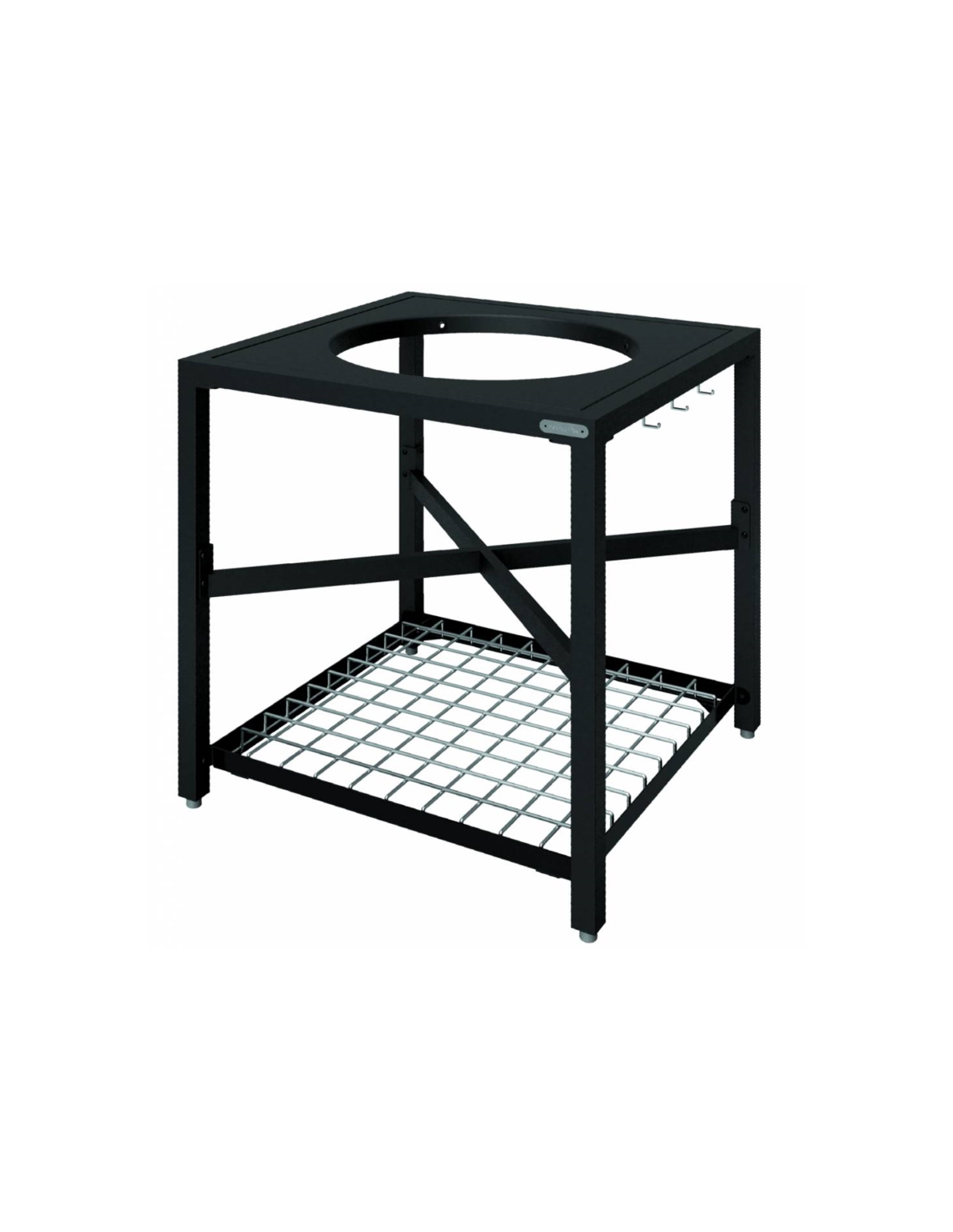 Het frame wordt geleverd met een stevig RVS rek en is voorzien van haakjes waar je je BBQ gereedschap aan op kunt hangen.