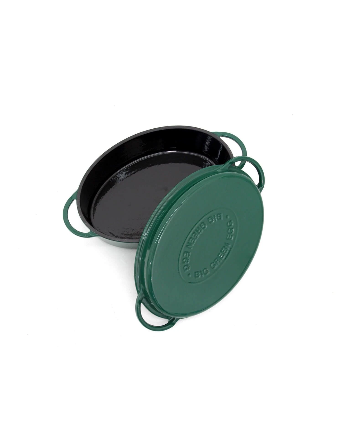 De Green Dutch Oven voor de Big Green Egg is met recht een zware jongen.Deze geëmailleerde gietijzeren braadpan stooft, suddert, kookt, bakt en braadt. Een echte Allrounder dus! Je kunt de deksel van de Green Dutch Oven apart gebruiken als ondiepe bakpan of als vorm voor cakes en desserts.