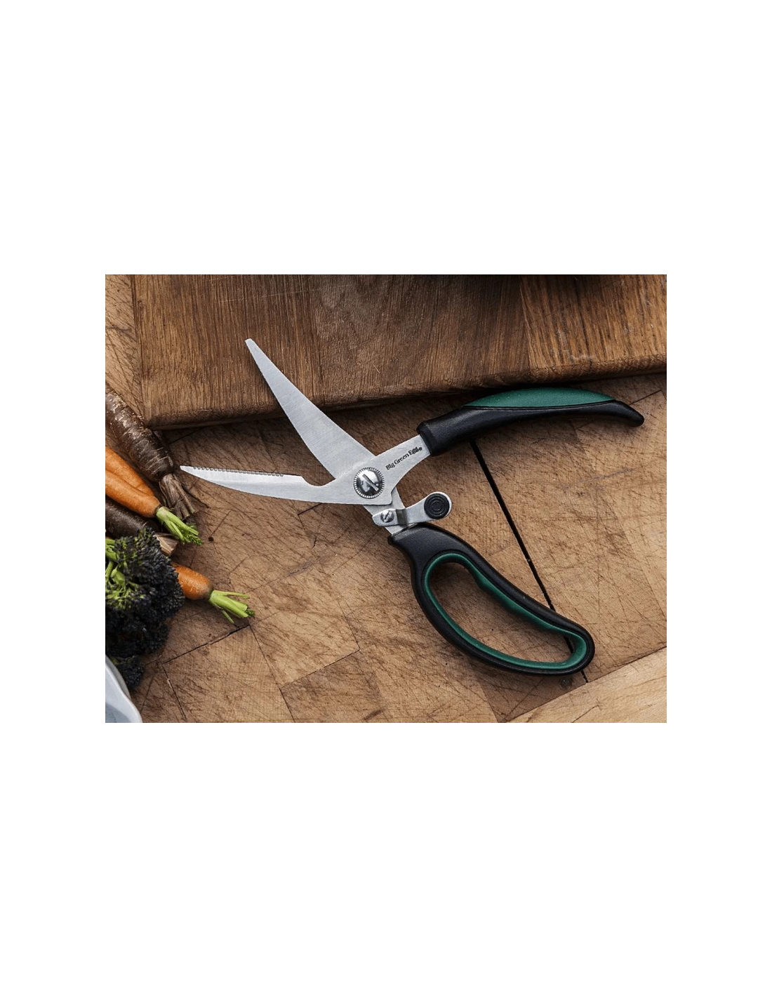 De Kitchen Shears is geknipt voor allerlei taken die met het koken op de Big Green Egg te maken hebben. Met deze roestvrijstalen keukenschaar deel je bijvoorbeeld gebraden kip moeiteloos in nette stukken. Maar zet de schaar ook zeker in voor het afknippen van de vinnen van een vis, het inkepen van kipfilets of het doorknippen van rolladetouwtjes.