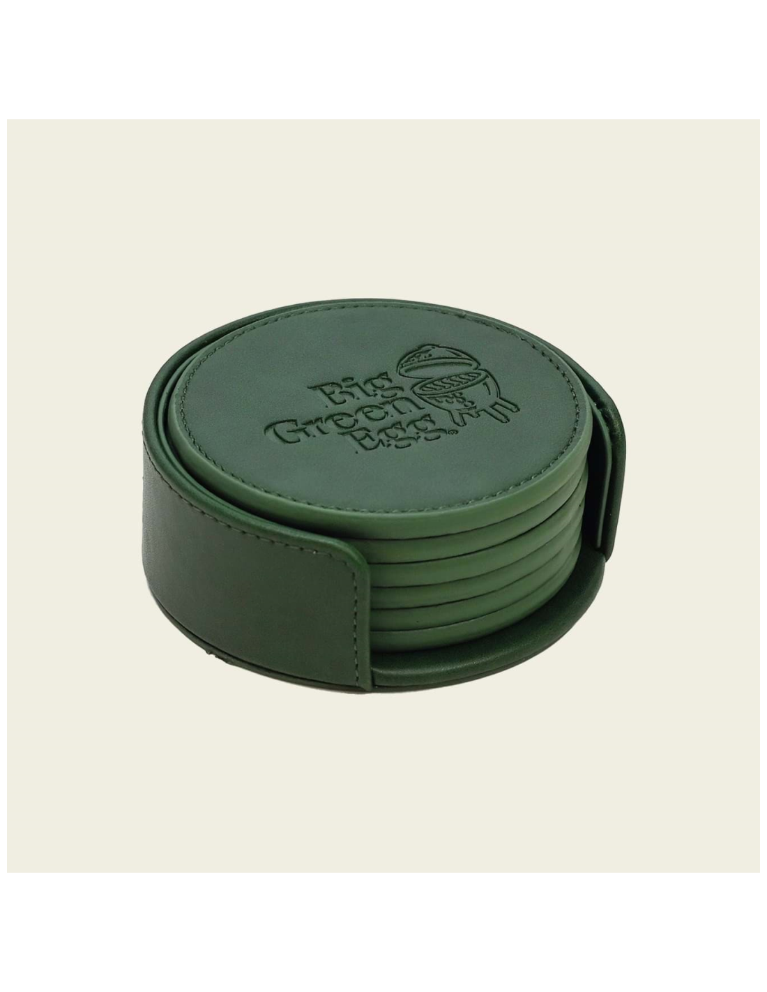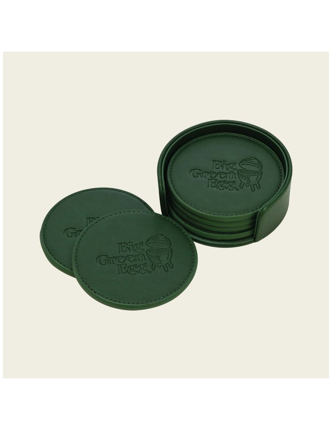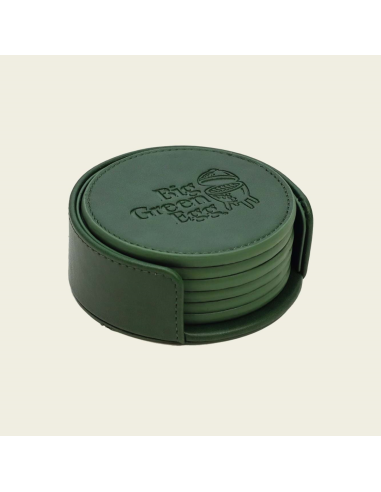 Kringen op je (buiten)tafel? Met deze originele set Big Green Egg onderzetters behoren ze tot het verleden. De houder met de 6 Big Green Egg groene PU-lederen onderzetters zet je natuurlijk standaard op je tafel, want dankzij de stijlvolle looks mogen de onderzetters gezien worden. De set heeft een luxe uitstraling en zowel de houder als elke onderzetter is voorzien van een gestanst Big Green Egg Logo. Berg je de onderzetters weer op in de houder? Neem ze dan indien nodig af met een vochtige doek.