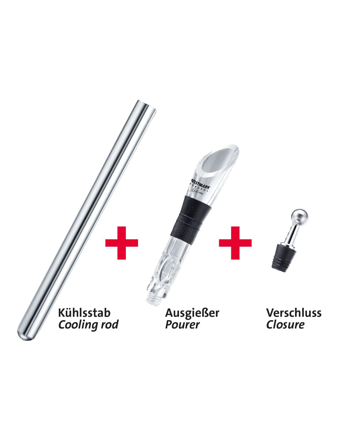 De wijnkoelstaaf met uitgieter van Westmark brengt rust en verfijning aan elk genietmoment. Het roestvrijstalen element koelt de wijn langdurig waardoor aroma’s intact blijven en elke slok zijn optimale balans behoudt. Dankzij de geïntegreerde decanteerschenktuit kan de wijn direct ademen tijdens het uitschenken. Het resultaat is een zachte, gelijkmatige stroom zonder druppels op tafel.