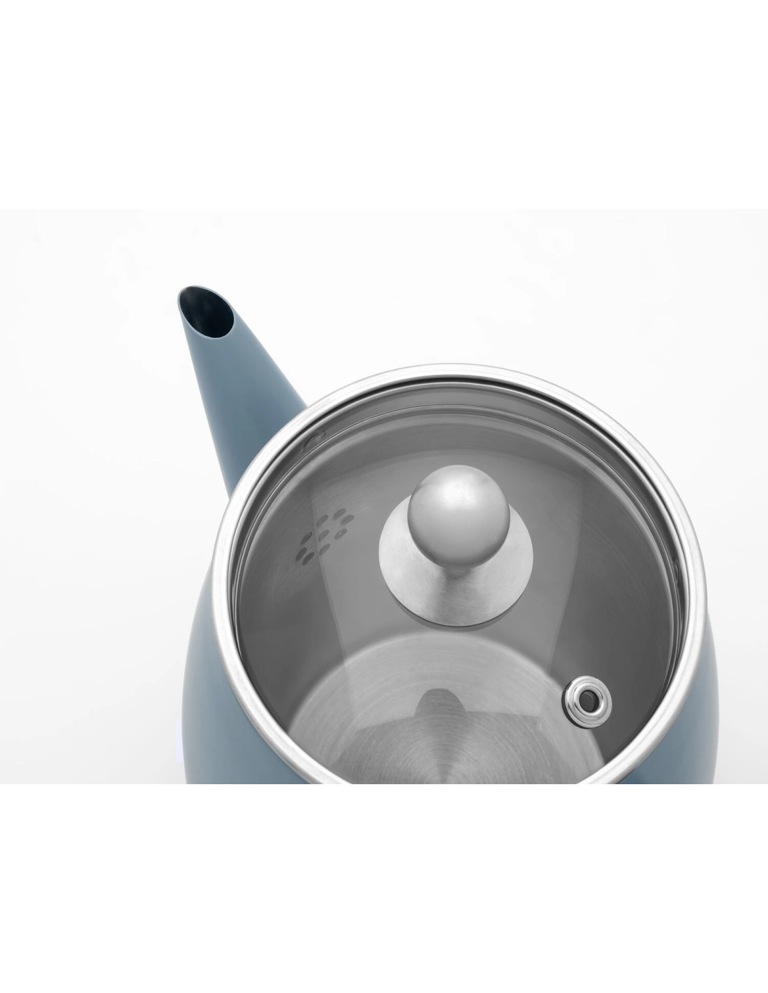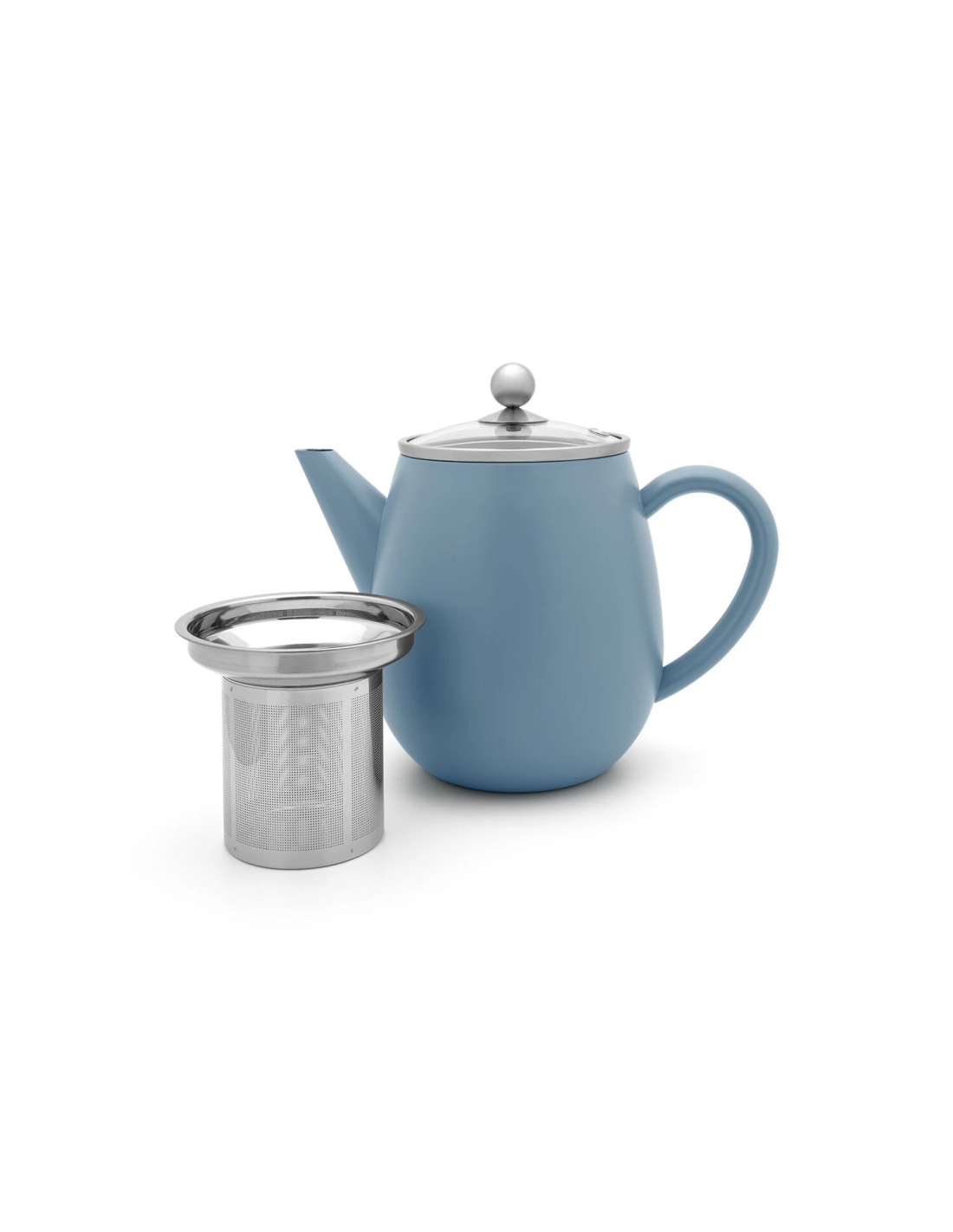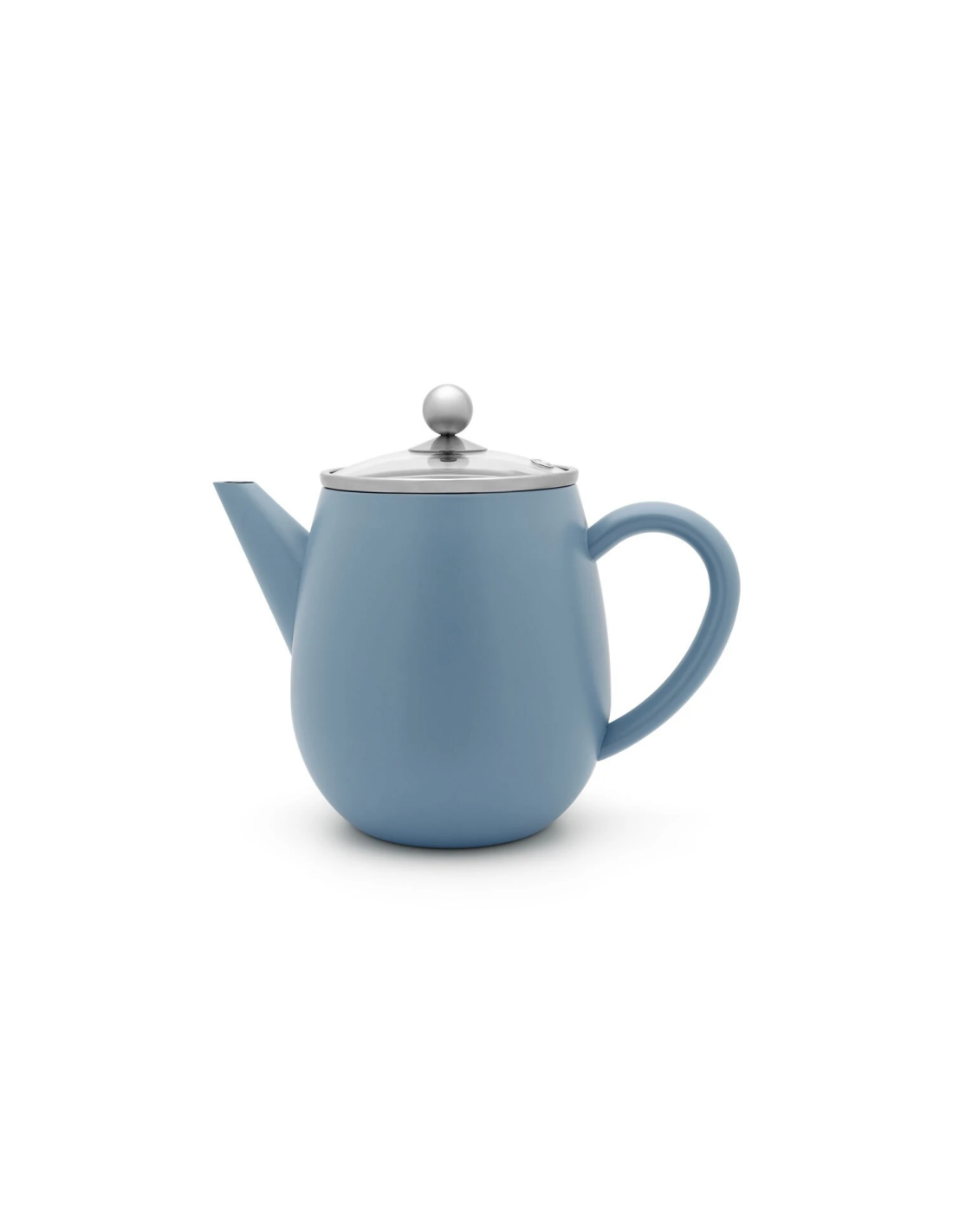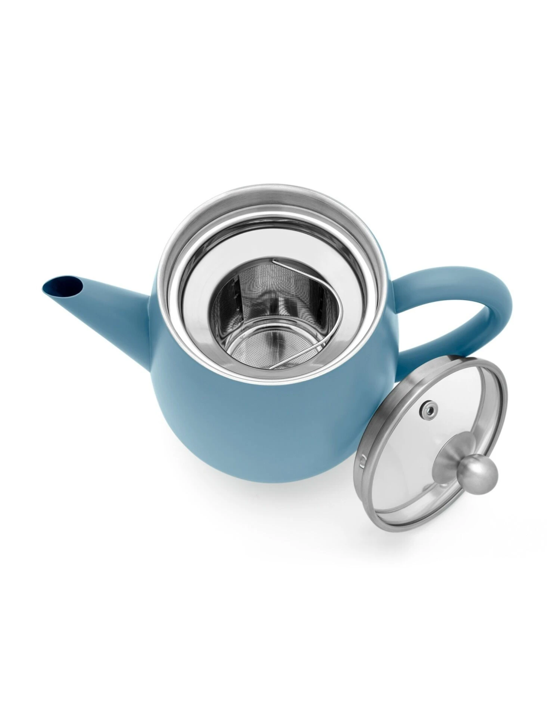Houdt thee wel drie kwartier tot een uur op temperatuur met Theepot Eva. De theepot is dubbelwandig en heeft een inhoud van 1,1 liter. De tuit is speciaal vormgegeven en lekt niet tijdens het schenken. De handgreep en dekselknop zijn zo gemaakt dat deze maximaal handwarm worden. Door de glazen deksel kan je snel zien hoe sterk de thee al is. Deze theepot is gemaakt in stijlvol blauw en wordt geleverd met een bijpassend theefilter. Hierdoor maak je gemakkelijk een pot thee van losse thee of kruiden.