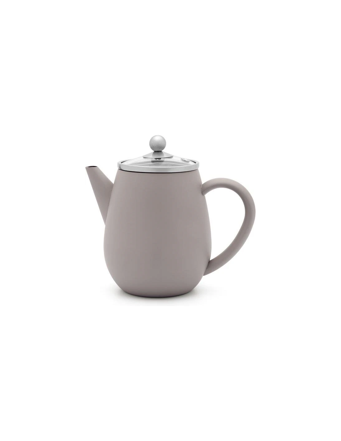 Houdt thee wel drie kwartier tot een uur op temperatuur met Theepot Eva. De theepot is dubbelwandig en heeft een inhoud van 1,1 liter. De tuit is speciaal vormgegeven en lekt niet tijdens het schenken. De handgreep en dekselknop zijn zo gemaakt dat deze maximaal handwarm worden. Door de glazen deksel kan je snel zien hoe sterk de thee al is. Deze theepot is gemaakt in stijlvol betongrijs en wordt geleverd met een bijpassend theefilter. Hierdoor maak je gemakkelijk een pot thee van losse thee of kruiden.