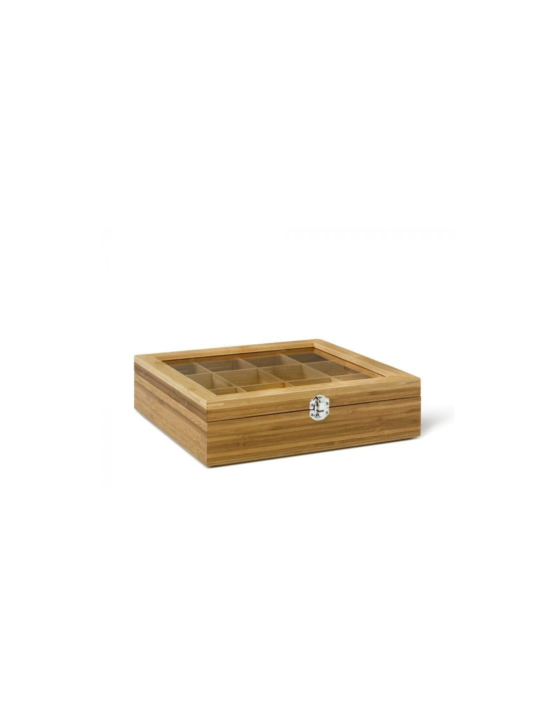 Theedoos met venster van bamboe hout met 12 vakken en venster.