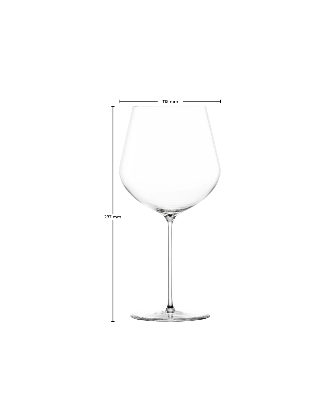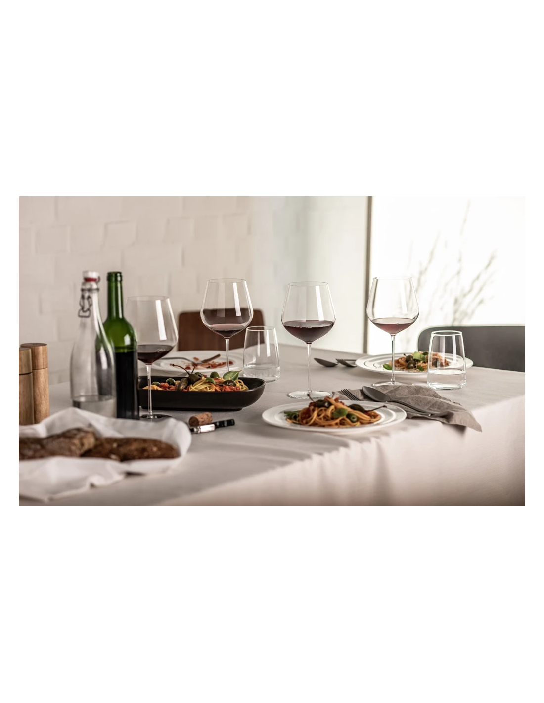 Het Bourgogne rode wijnglas uit de premium serie Vuelo van Zwiesel Glas is een meesterwerk van esthetiek, machinale precisie en sensorische expertise. De royale kelkvorm is sensorisch geoptimaliseerd en laat complexe Bourgognes hun volle aromatische pracht ontvouwen. De elegant getrokken steel en de brede bodemplaat zorgen voor een perfecte balans, terwijl de fijne wanddikte de wijn tot het absolute middelpunt maakt. De precies bewerkte mondrand maakt een bijna gewichtloos glijden van de wijn mogelijk. Aperitieven zoals Aperol Spritz of Gin Tonic komen in de royale glasvorm eveneens goed tot hun recht. Het Vuelo Bourgogne rode wijnglas, machinaal vervaardigd uit briljant Tritan®-kristalglas in Zwiesel, Duitsland, is breukbestendig en vaatwasserbestendig.