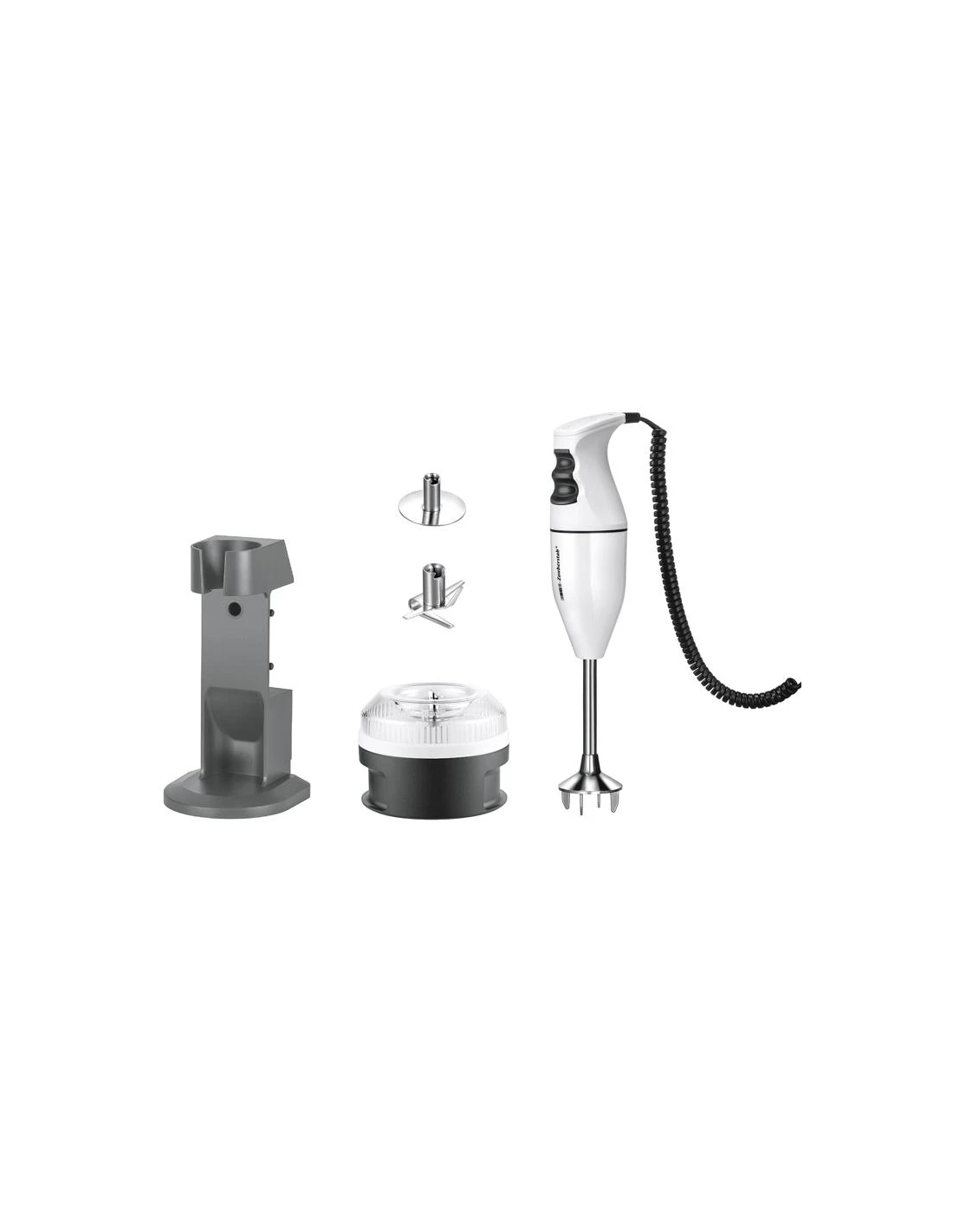 Snel een zelfgemaakte mayonaise maken? Even snel ijsblokjes fijnhakken, zodat de smoothie ’s ochtends en de caipirinha ’s avonds op de perfecte temperatuur geserveerd kunnen worden? Even snel een beslag voor lekkere pannenkoeken mixen? Dan is dit het moment voor de ESGE-staafmixer EK1200 Select. Uitgerust met het multifunctionele mes (fijnhakken, hakken, roeren), de klopschijf (slagroom, mayonaise & co.) en de processor wordt de ESGE-staafmixer een multifunctionele keukenmachine. Met het praktische statief is hij altijd klaar voor gebruik. En het grote staafmixer-kookboek met heerlijke receptideeën zit ook bij het pakket!