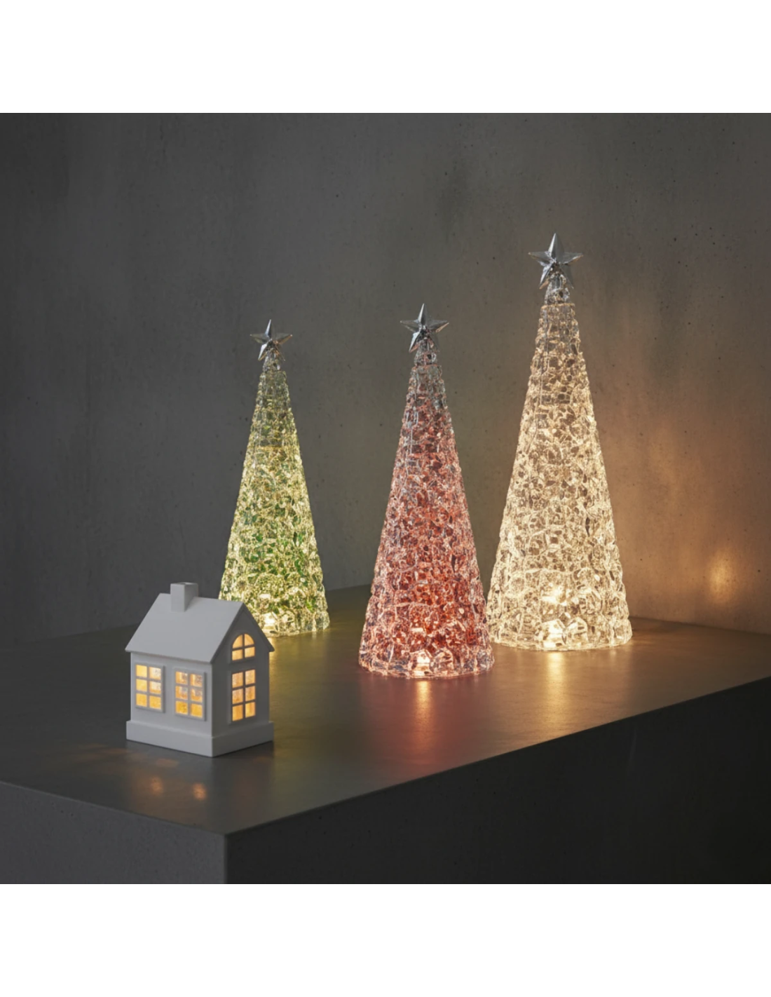 Dankzij de handige timer geniet je elke avond zes uur lang van een warme gloed zonder dat je ernaar hoeft om te kijken. De kerstboom werkt op drie AAA-batterijen en is daardoor eenvoudig overal te plaatsen, van een feestelijk gedekte tafel tot een gezellige vensterbank. Het duurzame acryl en de verfijnde afwerking maken dit lichtobject tot een tijdloze sfeermaker die elk jaar opnieuw de magie van kerst tot leven brengt.