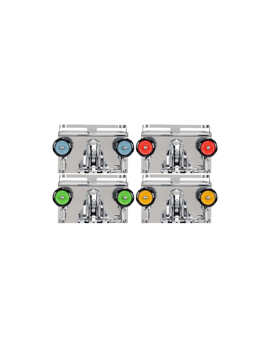Wat krijg ik meegeleverd om direct te starten? Je ontvangt twee filterdragers, diverse filters, een blindfilter voor onderhoud, een hoogwaardige tamper en de gekleurde plaatjes voor de knoppen.