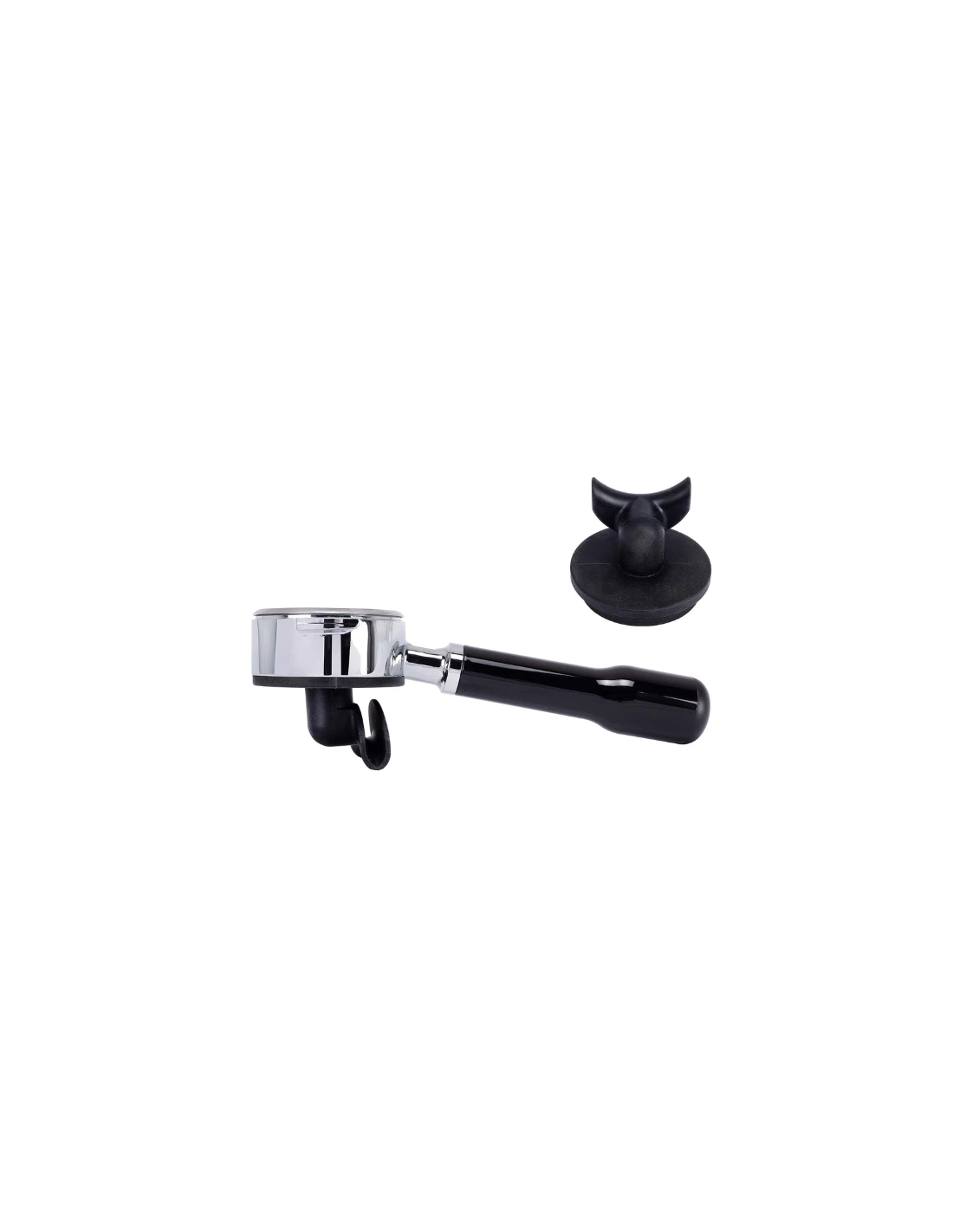 • Meegeleverd: Bodemloze filterdrager, siliconen uitloopset (1 en 2 uitlopen), filters (7g, 14g, 21g), blindfilter, tamper, reinigingsborstel.