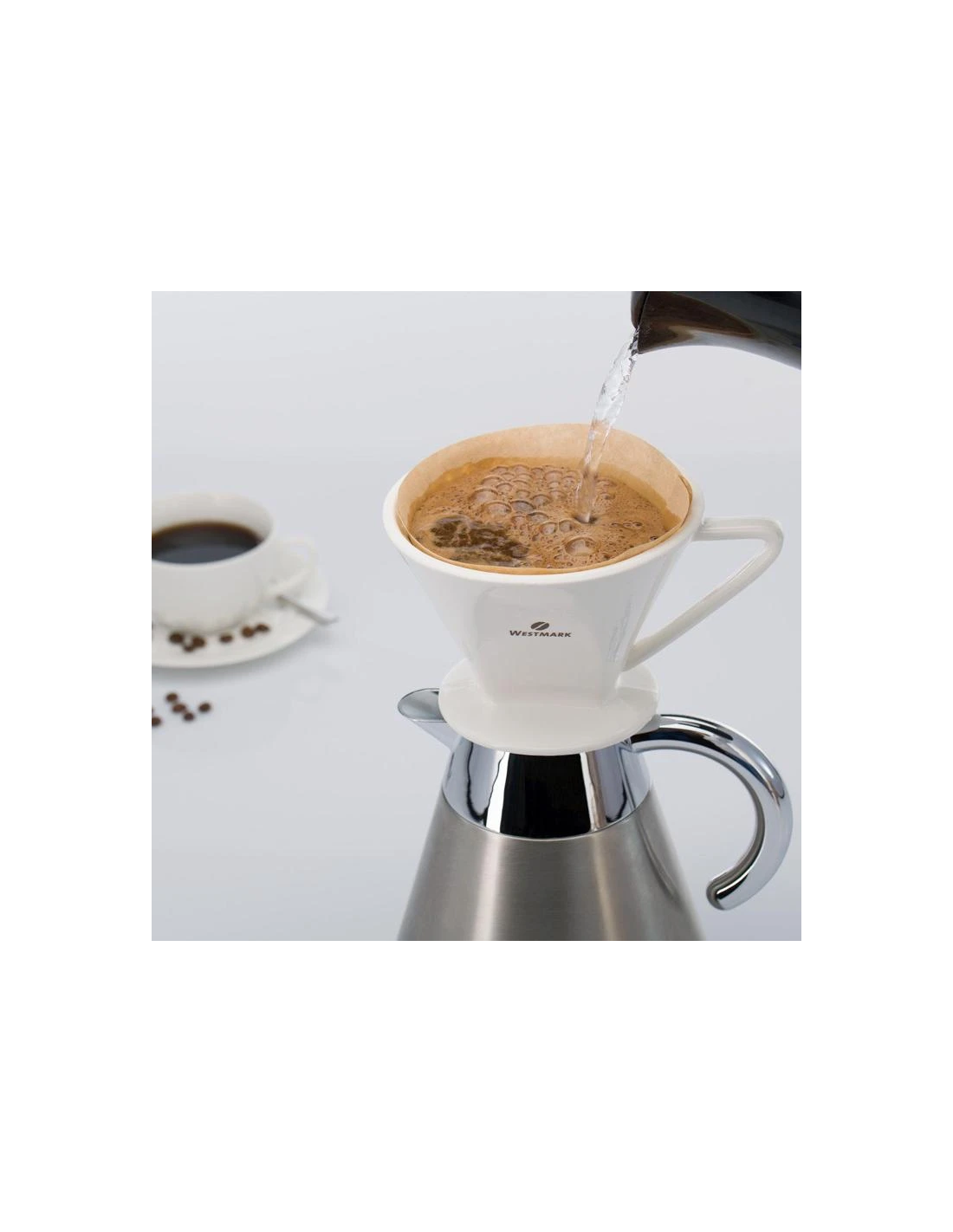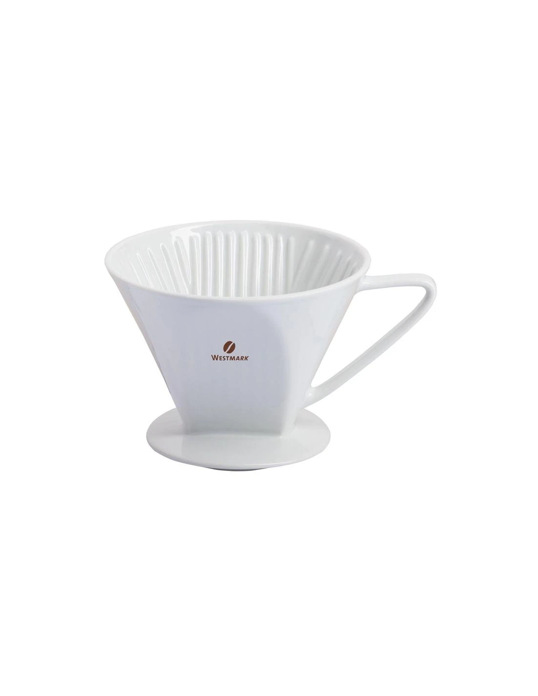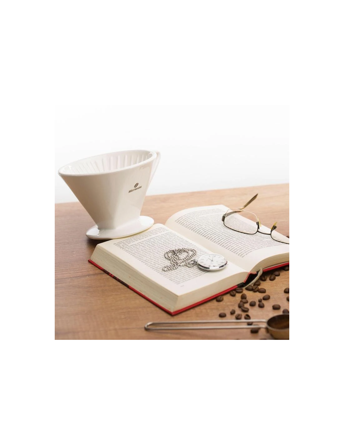 De authentieke wit porseleinen filterhouder. Lekkere koffie zoals die alleen bij oma smaakte, het kan nog steeds! Voor filterzakjes Nr. 4. Een nog duurzamer resultaat en nog betere smaak krijg je in combinatie met een permanent goudfilter.