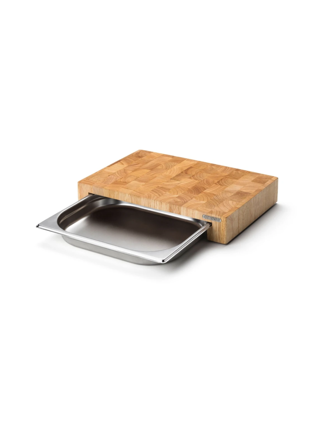 Continenta Snijplank met RVS opvanglade – Luxe hakblok van kops rubberhout.