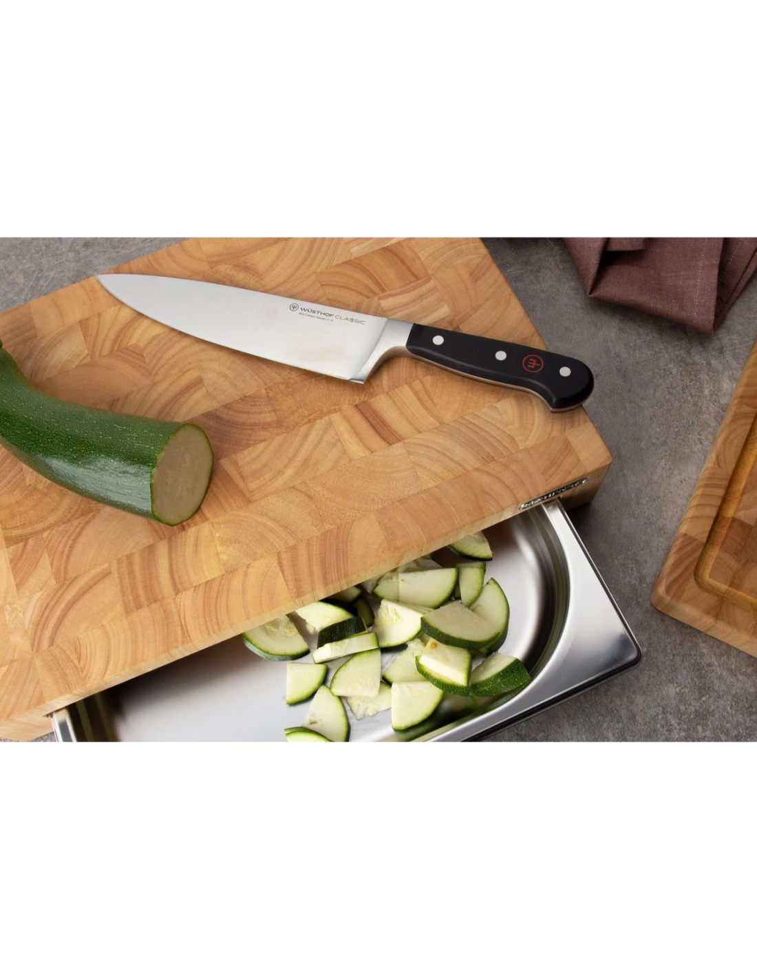 Ervaar het ultieme gemak van een professioneel hakblok waarbij je gesneden ingrediënten direct opvangt in een hoogwaardige lade.