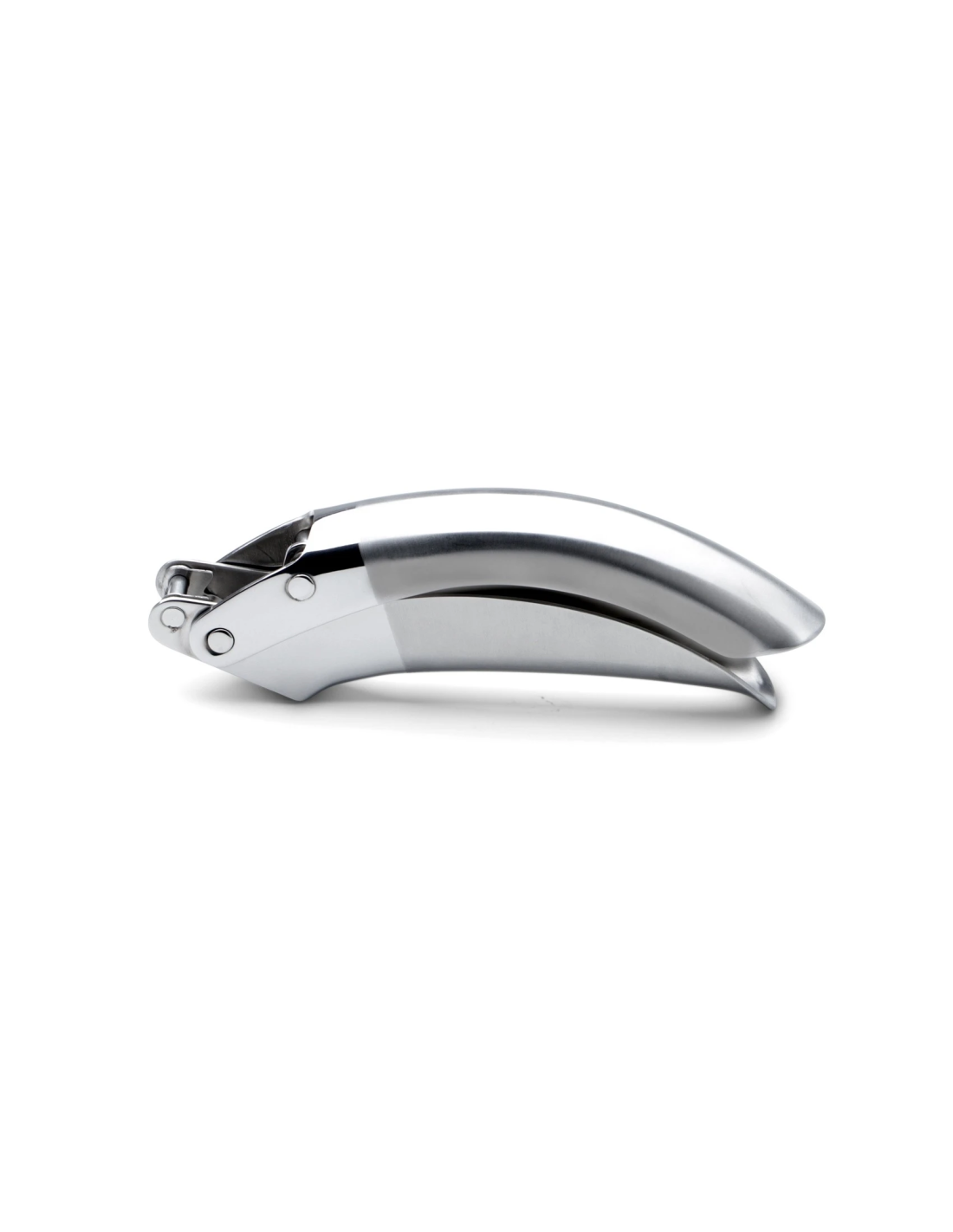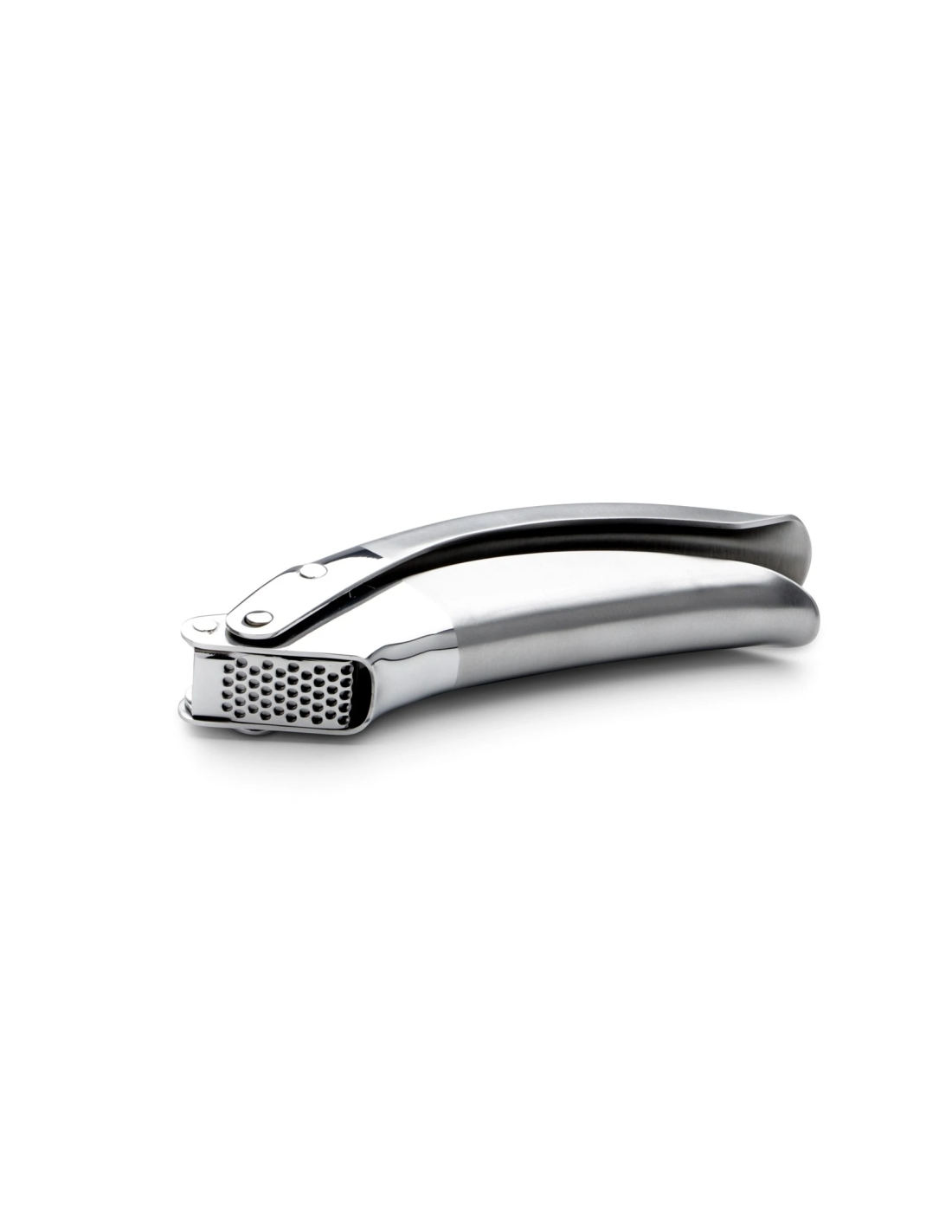 Gemakkelijk te gebruiken knoflookpers, je kunt er zelfs hele (ongepelde) knoflookteentjes mee persen. Bij voorkeur snijd je wel het houtachtige kontje van het teentje. Door de dubbele hefboom van de knoflookpers kun je met weinig moeite veel kracht ontwikkelen om de knoflook fijn te persen. Wil je meer dan één teentje persen is het makkelijker om de teentjes even te pellen, dan pers je ze zonder problemen achter elkaar uit. Dan hoef je minder vaak de zeef vrij te maken.
