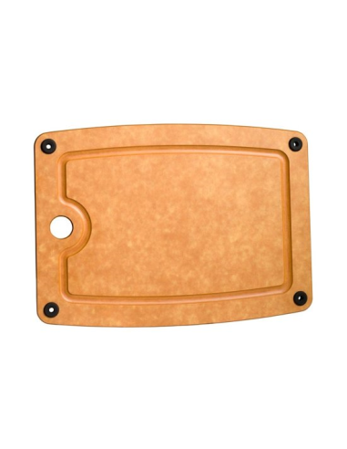 Deze eco-vriendelijke snijplank is gemaakt van FSC-gecertificeerd hout gecombineerd met pulp en hars. Dit resulteert in een dunne snijplank met een glad en hygiënisch oppervlak. Het grote voordeel van dit materiaal is dat deze zacht genoeg is om de scherpte van het mes niet aan te tasten maar hard genoeg om ervoor te zorgen dat er geen diepe krassen ontstaan.