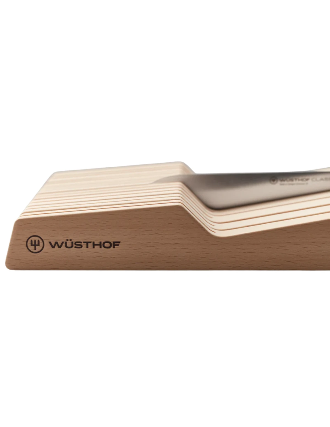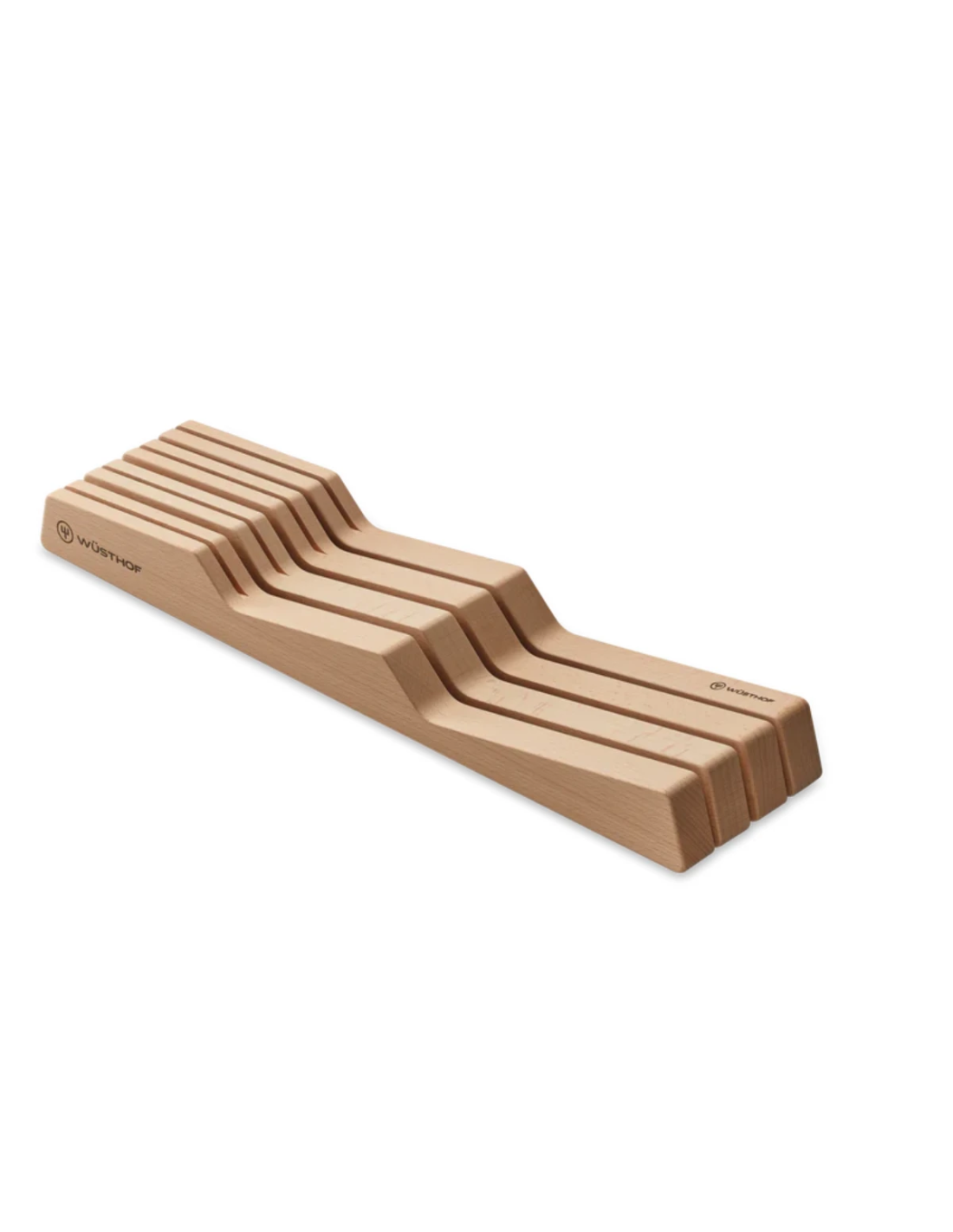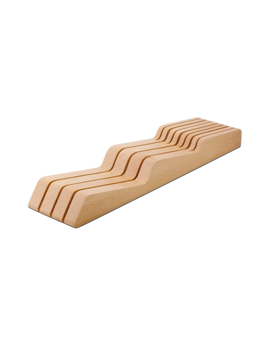 Met dit bijzondere opbergblok blijven messen, vingers en de lade onbeschadigd. De messen passen namelijk netjes in het blok, zo liggen ze veilig en kom je niet perongeluk tegen een scherp lemmet. De lade raakt ook niet beschadigd van losliggende en schuivende messen. Omdat de netjes en stevig opgeborgen liggen blijven de messen perfect scherp en worden ze niet bot van tegen elkaar botsen en schuiven.