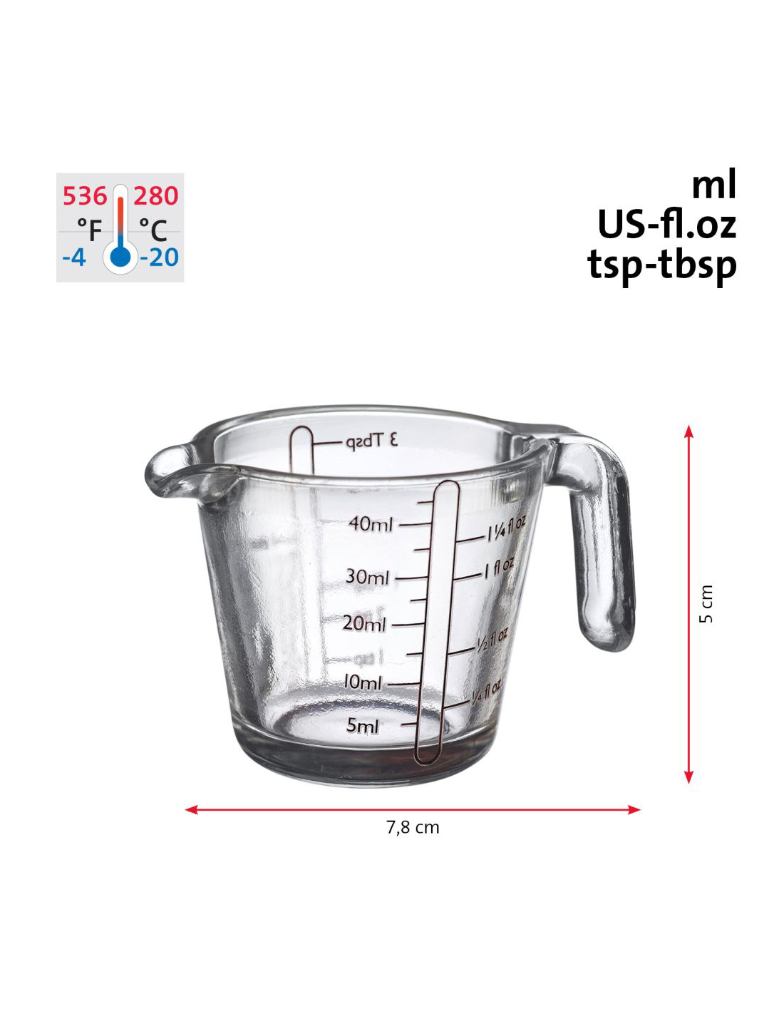 ✔ Maateenheden: ml, , US-fl.oz, theelepel-eetlepel