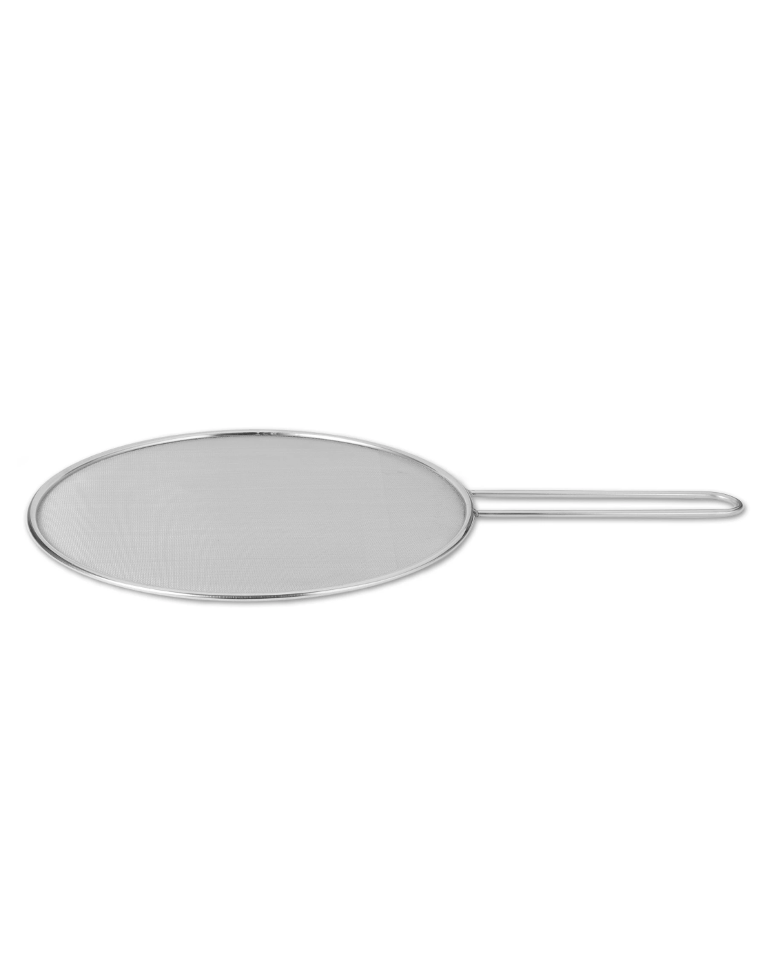 Het spatdeksel is vervaardigd uit roestvrijstaal en heeft een diameter van 33cm. Het gaas van de deksel is zeer fijnmazig zodat spetters binnen blijven maar eventueel vocht wel weg kan komen. Voorzien van een stevig handvat om 'm makkelijk op te tillen en te verplaatsen.