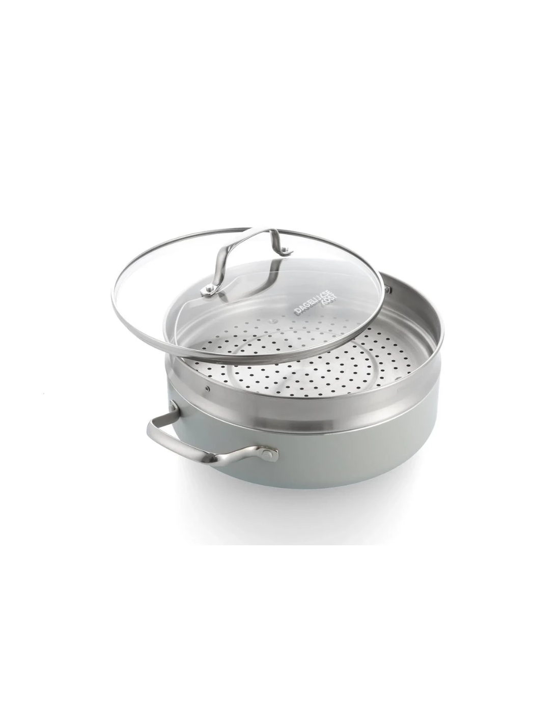 Wat deze pan echt bijzonder maakt, is de slimme stoominzet. Hiermee stoom je knapperige groenten of malse vis terwijl je onderin de pan aardappelen kookt of een saus bereidt. Je bespaart tijd en energie, terwijl de pure smaken en belangrijke voedingsstoffen optimaal behouden blijven. Het robuuste deksel sluit de pan perfect af, zodat de warmte binnenblijft en je gerechten sappig blijven. Of je nu een doorgewinterde hobbykok bent of gewoon houdt van goed eten, dit is het gereedschap dat je helpt om met zelfvertrouwen en plezier de lekkerste creaties te serveren.