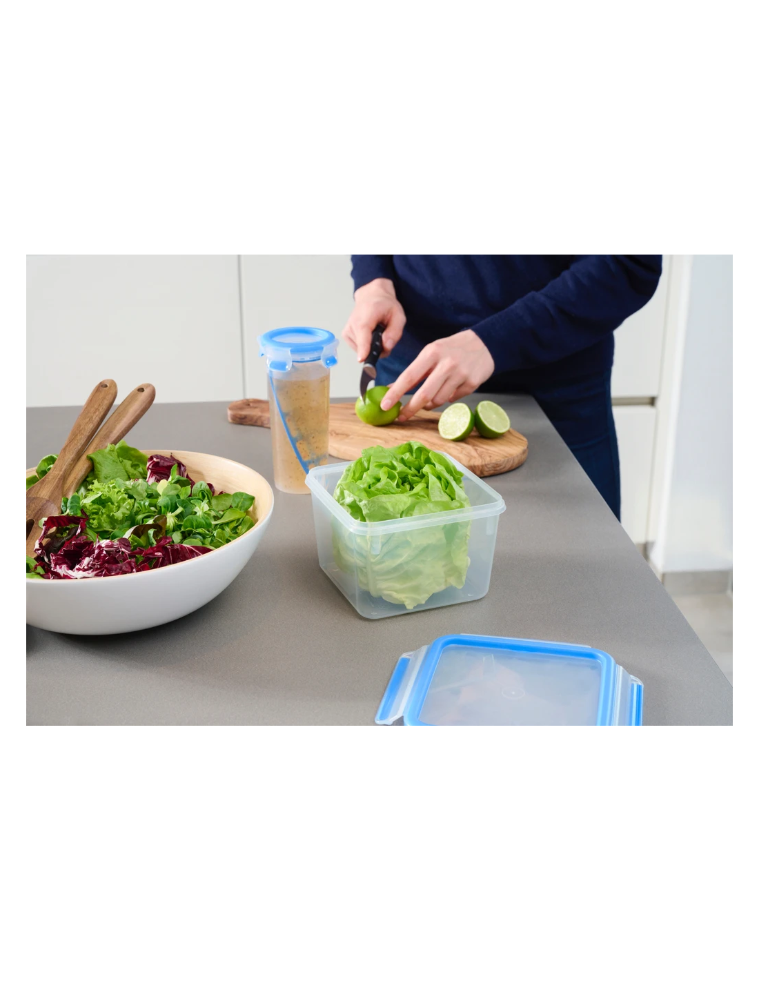 Een water- en luchtdichte bewaardoos. Dankzij een handig clipsysteem wordt de deksel stevig vastgeklemd, wat zonder veel kracht weer te openen en te sluiten is. De bewaardoos mag niet warmer worden dan 110 graden en mag daarom maar tot 110 graden in de magnetron. Ook mag het in de vriezer of koelkast tot -40 graden.