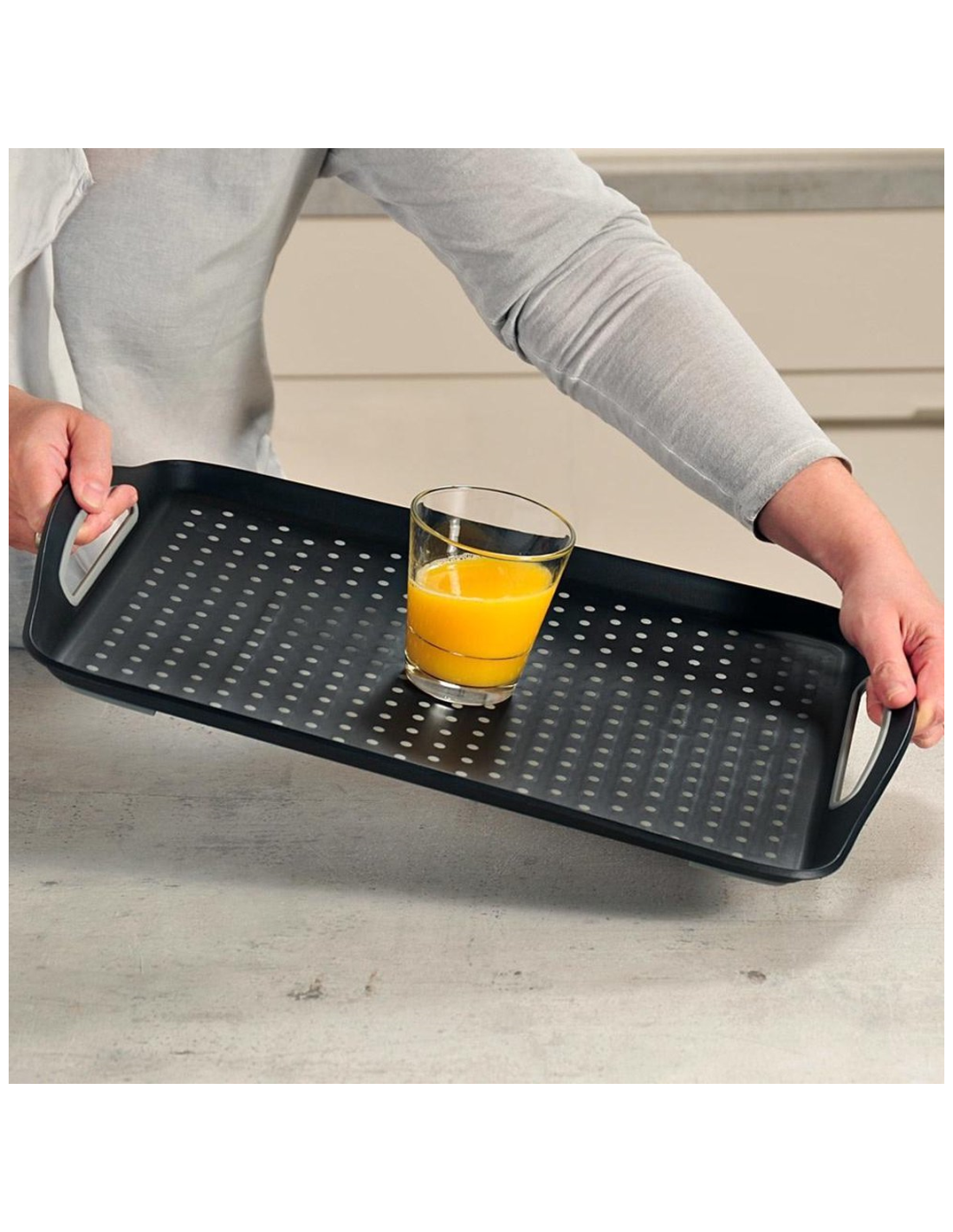 Dienblad met anti-slip afwerking (stippen), waardoor de bekers en/of borden niet wegglijden tijdens het serveren. Tevens heeft deze een opstaande rand. Het dienblad heeft handvaten voor extra grip, waardoor deze gemakkelijk op te tillen is.
