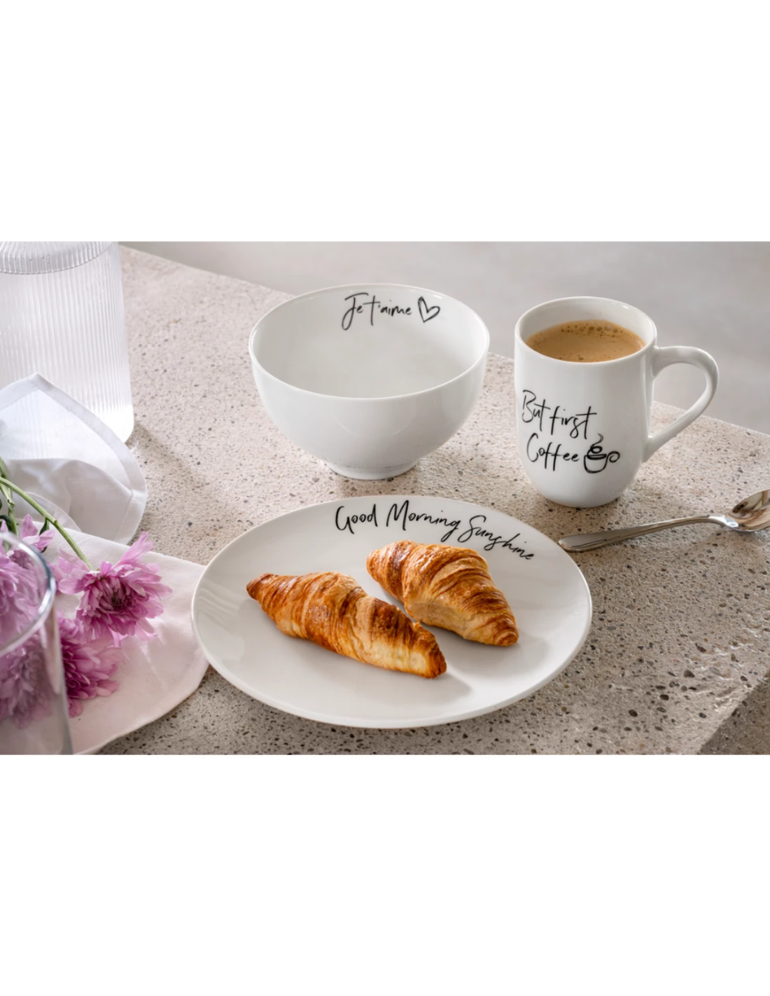 De tekst is aangebracht met een geavanceerde baktechniek onder de glazuurlaag, waardoor het ontwerp beschermd is tegen vervaging en slijtage in de vaatwasser.