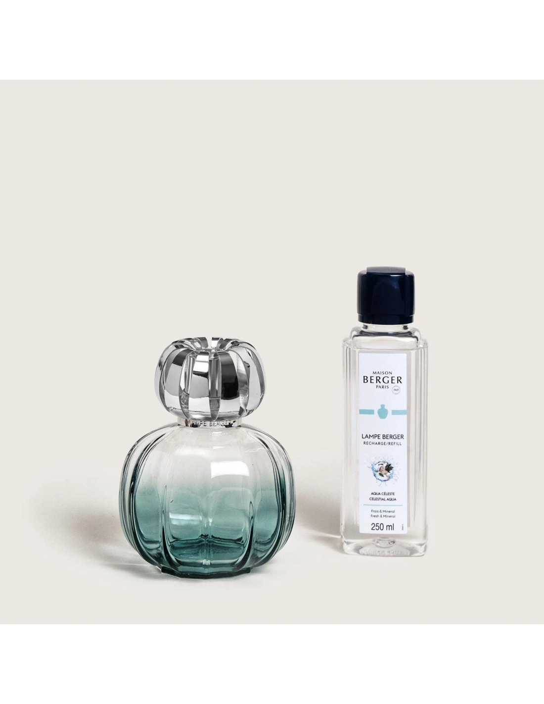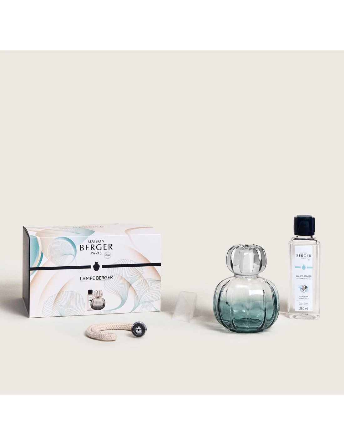 De Lampe Berger Giftset Corali Verte valt op door het verfijnde ontwerp van De Vog. Het glas met royale vormen, een groen kleurverloop en verticale reliëfdetails past in elk interieur. De glanzend zilveren houder geeft een moderne uitstraling.