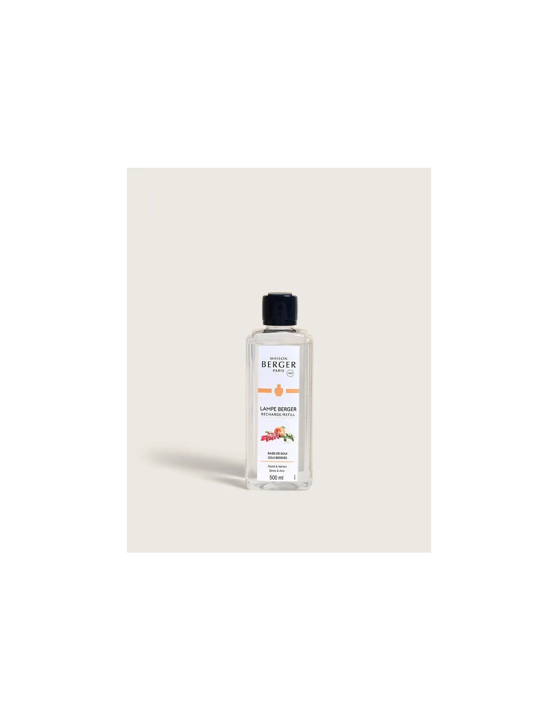 Nodig energie en vitaliteit uit in uw interieur met het Lampe Berger Huisparfum Baies de Goji 500ml. Dit vrolijke huisparfum opent met sprankelende noten van sinaasappel, mandarijn en citroenschil, die doen denken aan de "lachende bes". Het hart onthult een bloemig boeket van kamperfoelie en gojibessen, teder neergelegd op een warme basis van witte muskus, kasjmierhout en amber. Een parfum dat zowel fris en levendig als teder en vrolijk is, en extra energie brengt in elke kamer.