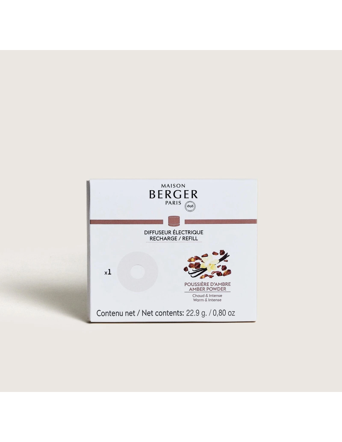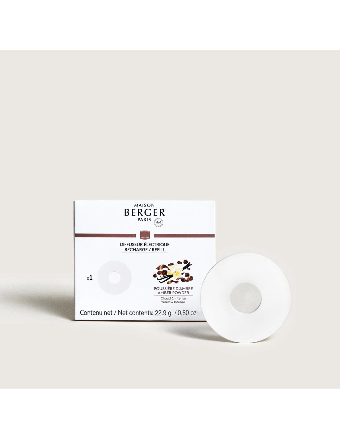 De Navulling Nomad elektrische parfumdiffuser Poussière d'Ambre zorgt voor een droge parfumverspreiding waarbij het parfum geleidelijk vrijkomt zonder warmteafgifte.