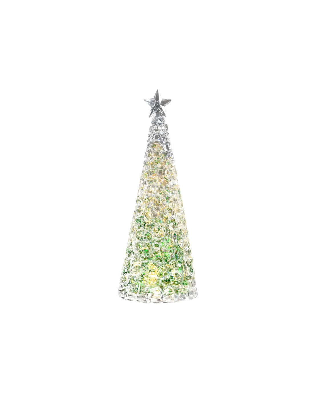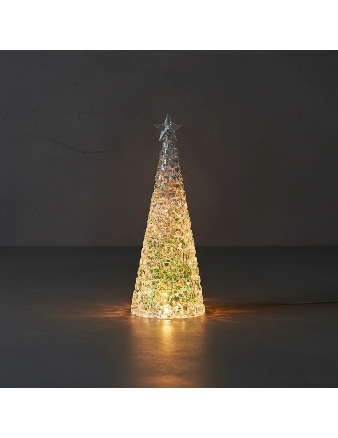 De Sompex Kerstboom Glamour Led Groen 28 cm brengt de magie van kerst tot leven in een subtiele, moderne vorm. De transparante acrylstructuur bevat een vloeistof waarin fijne glitters langzaam bewegen zodra het warme LED-licht aanspringt. Zo ontstaat een elegant spel van licht en reflectie dat rust en luxe uitstraalt, perfect voor feestelijke tafels of gezellige avonden in huis.