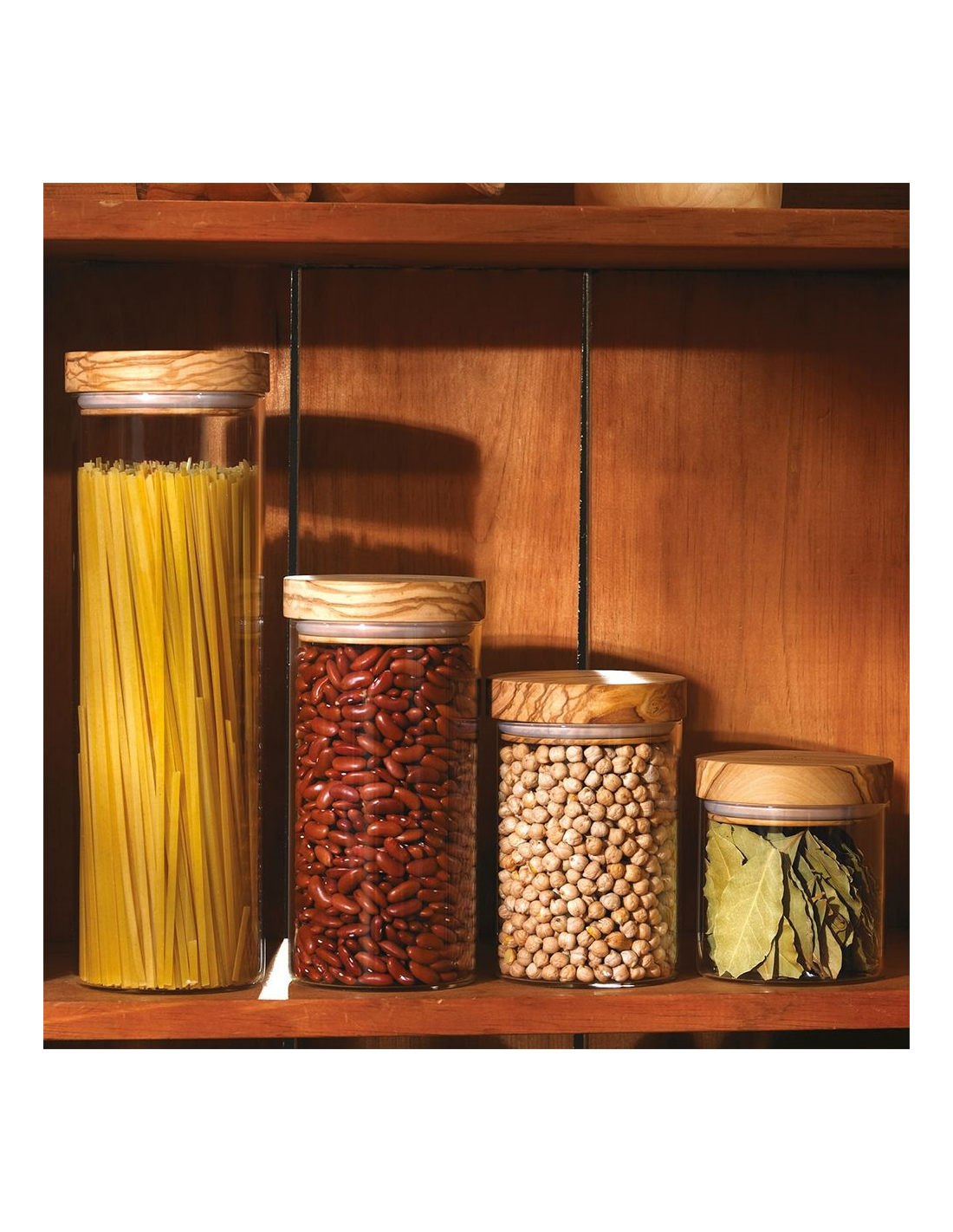 Deze serie van voorraadpotten is geweldig voor het tonen en bewaren van voedsel. Elk walnotenhouten deksel heeft zijn eigen unieke tekening en karakter. Het borosilicaat glas staat bekend om zijn duurzaamheid, helderheid, krasbestendigheid en is goed bestand tegen warmteschokken.